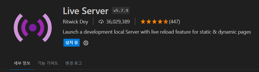 위와 같이 좌측 사이드바의 확장탭에서 'live server'를 검색하고 Ritwick Dey님의 Live Server를 설치하면 됩니다.
